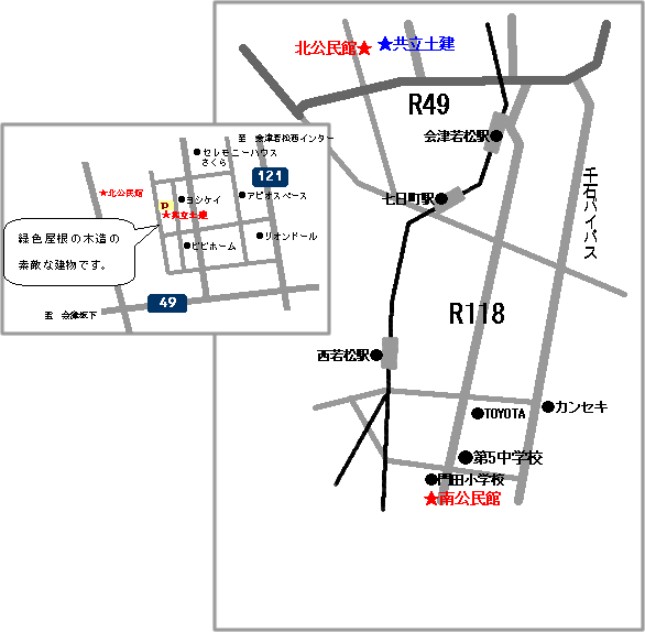 北公民館・南公民館・アピオ共立土建へ行くには…
